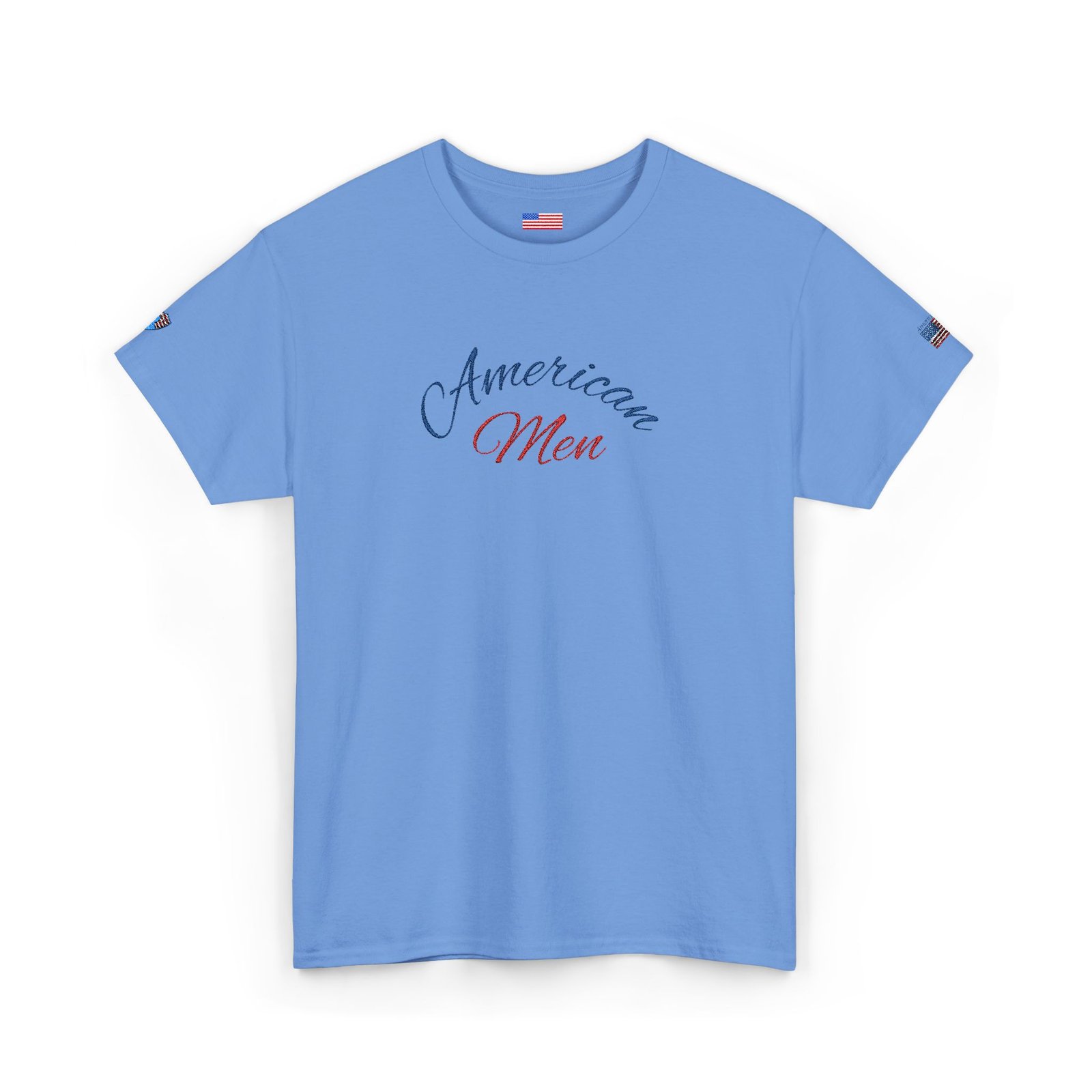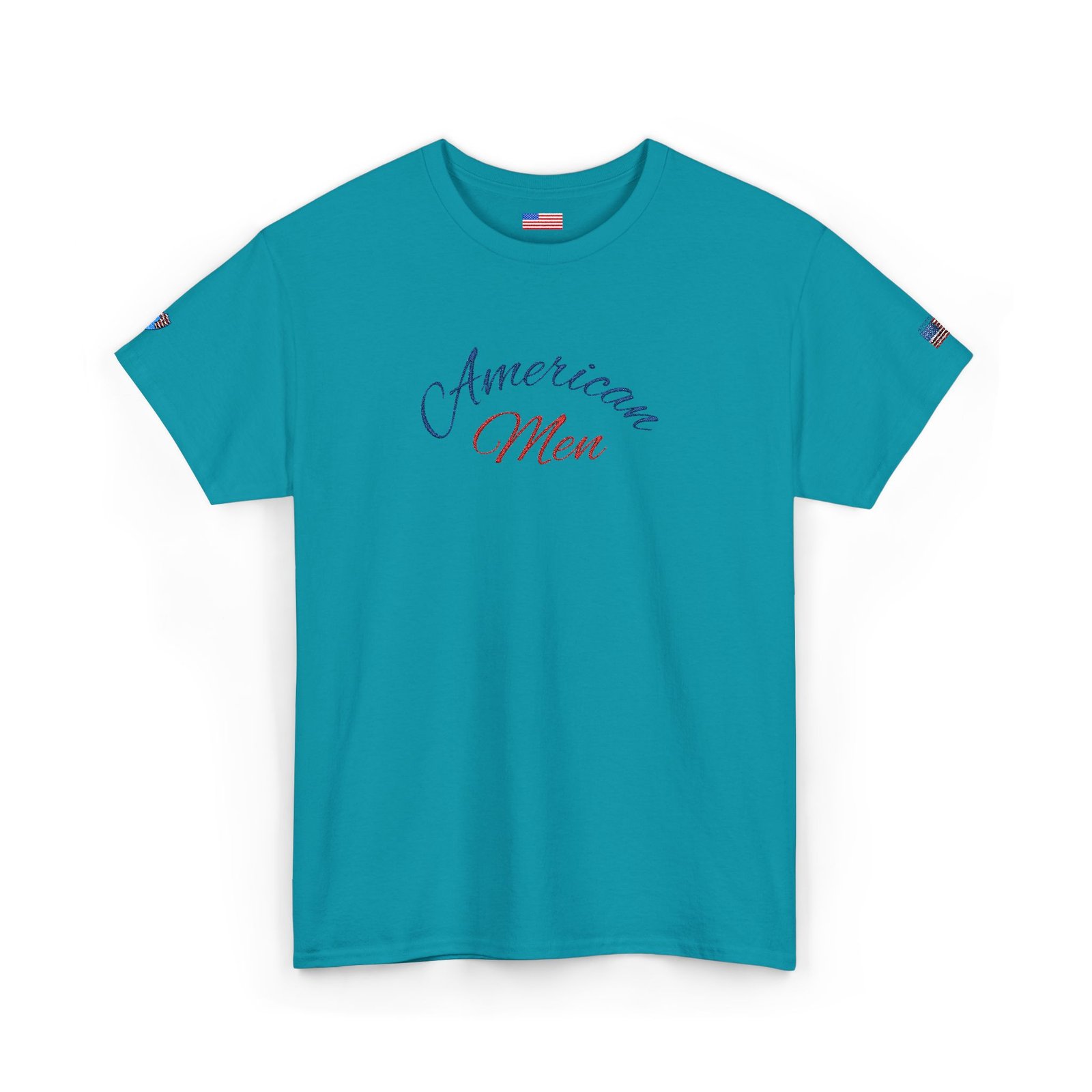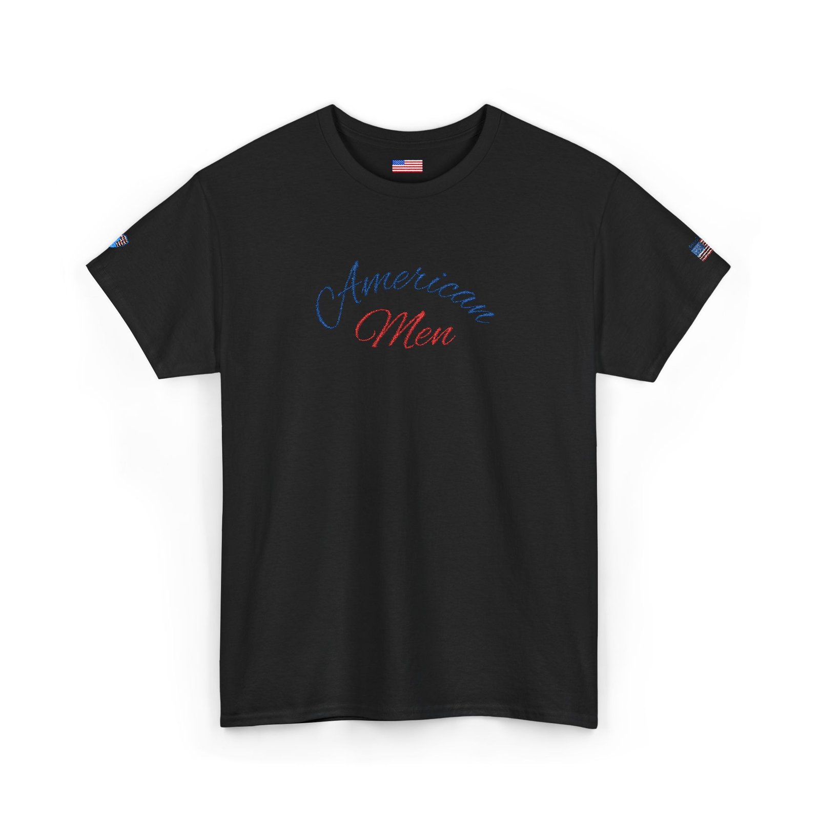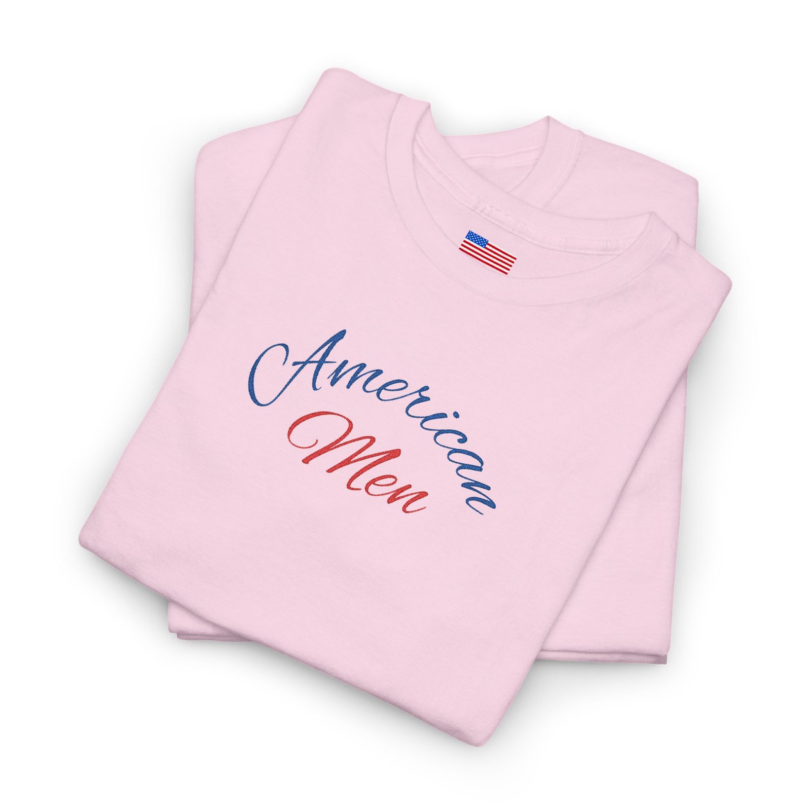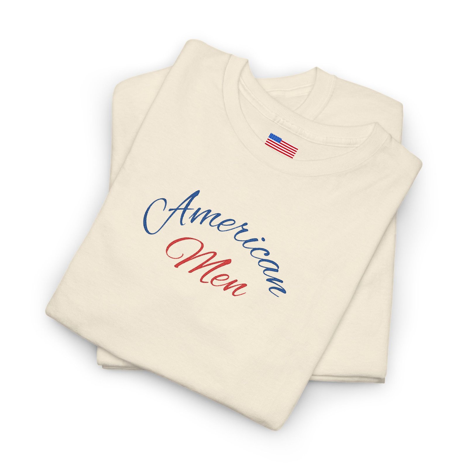 This embroidered American Men script tee feels like a quiet nod to hometown afternoons and long drives down familiar roads. The soft cotton holds the tidy, hand-stitched script close to the chest — subtle, confident, and quietly proud. Wear it to small gatherings, local shows, or when you want your outfit to speak with calm intent. The medium-weight fabric sits comfortably year-round and the classic crew silhouette layers easily under a jacket or stands alone with worn denim. It’s the kind of shirt you reach for when you want something dependable and a little soulful.