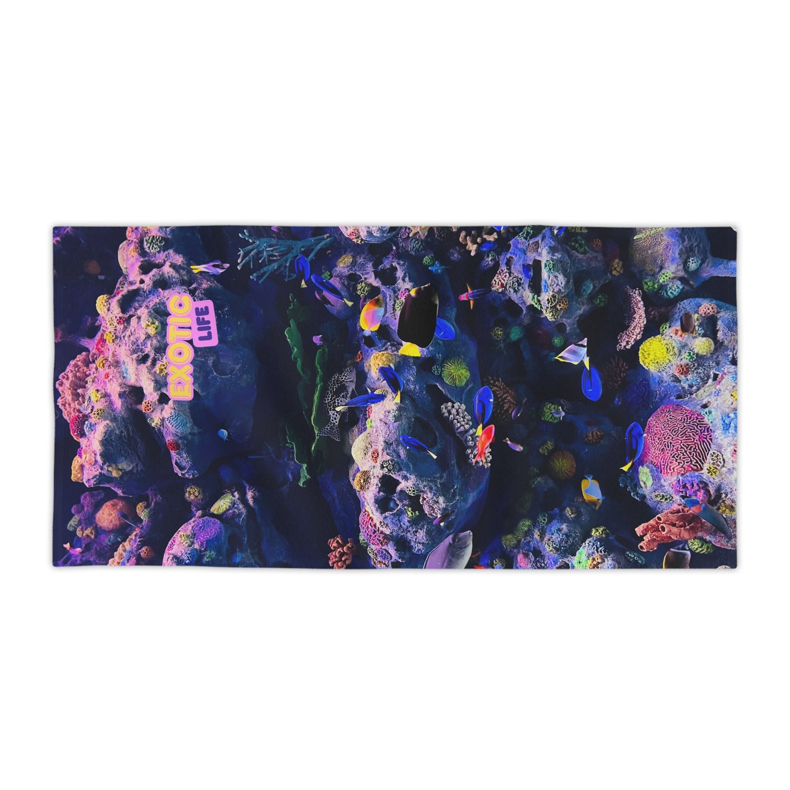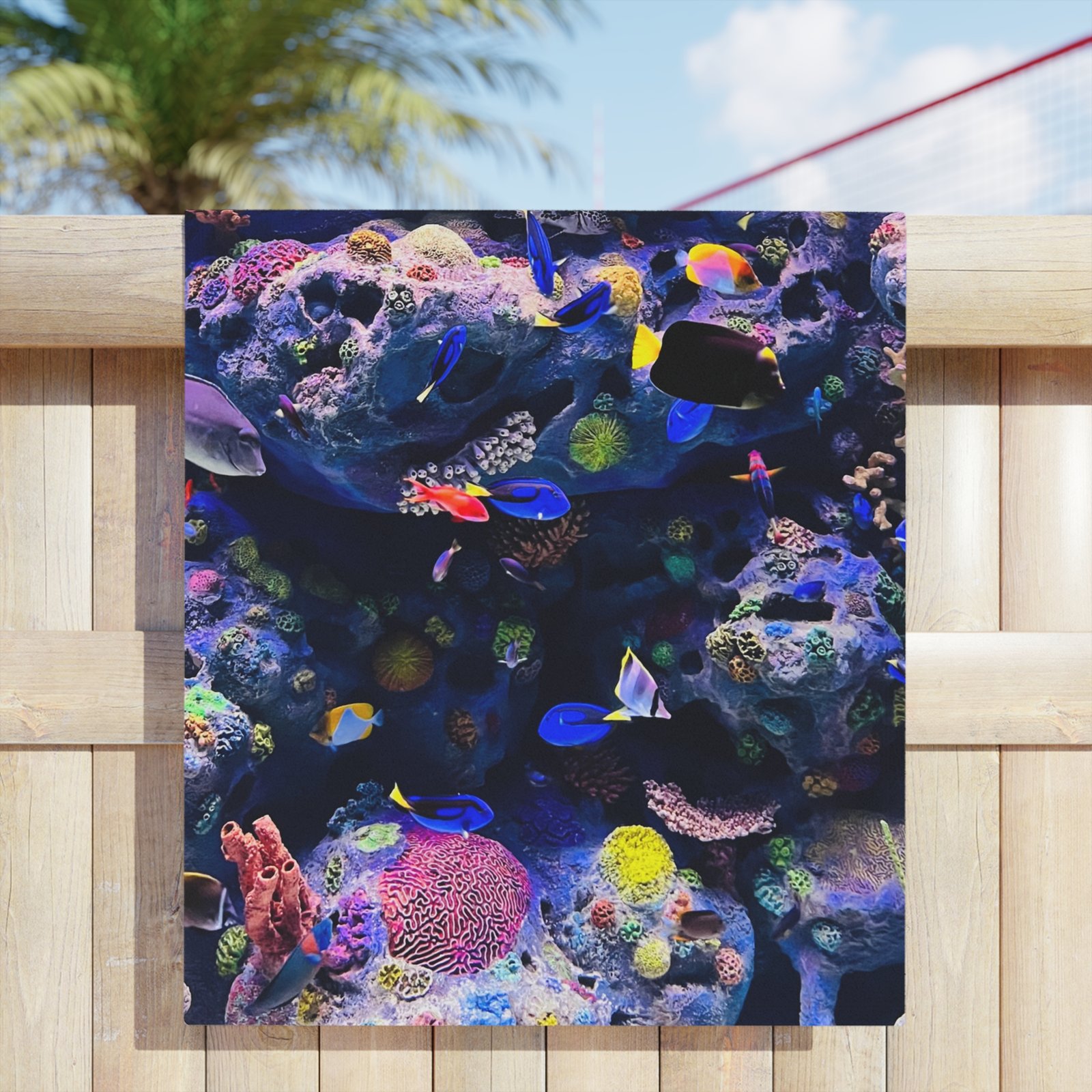 Dive into a small, vibrant world with this beach towel that feels like a late-night aquarium glowing under neon lights. Deep navy and jewel tones sweep across the fabric, punctuated by tiny, colorful fish and coral details that catch the eye without shouting. It’s soft against skin, dries quickly, and folds down small enough to slip into a travel bag—so it travels from city pool decks to coastal hideaways with ease. Lay it out for a quiet sunrise stretch, wrap it around your shoulders after a chilly evening swim, or use it as a color-rich picnic layer that brings an unexpected, artful mood to the day. The edge-to-edge print keeps the scene uninterrupted, and the plush cotton back adds a familiar, comforting touch every time you reach for it.