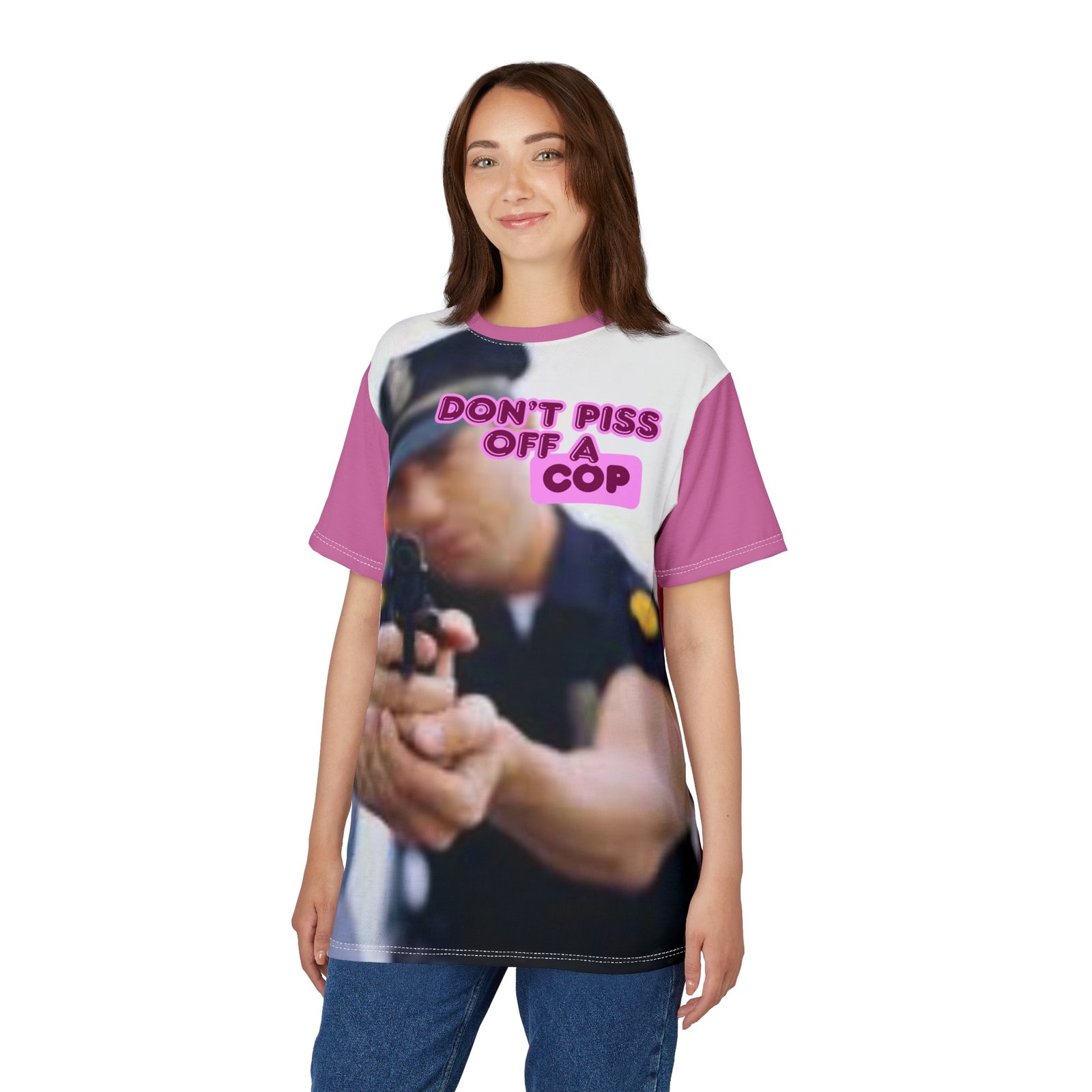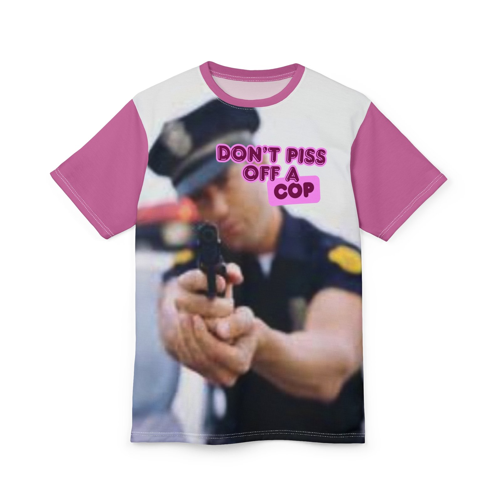 Introducing our bold and vibrant Unisex Cop Tee Shirt Tee, perfect for those who appreciate a mix of police humor and personality in their wardrobe. This shirt is all about making a statement, evoking fear and a playful vibe. Great for casual outings, it’s an ideal conversation starter whether you’re at a party, gathering, or out with friends. The tee shirt fits perfectly into your daily casual style, seamlessly blending comfort and uniqueness. Funny Unisex Cop Tee Shirt, Police Humor Shirt, Gift for Law Enforcement Supporters, Don’t Piss Off A Cop Graphic Top. Designed for individuals who aren’t afraid to express themselves, this product is perfect for younger audiences and anyone with a keen sense of humor. Wear it on casual Fridays, during fun events, or just to brighten someone’s day. This shirt also makes a great gift for birthdays or holidays, bringing joy and laughter to any occasion. Product features – 100% Polyester for durability and quick drying – Side seams provide structural support – Ribbed knit collar ensures shape retention – Shoulder tape stabilizes seams and prevents stretching – Available in two fabric weights for comfort options Care instructions – Do not dryclean – Do not iron – Tumble dry: low heat – Do not bleach – Machine wash: cold (max 30C or 90F), gentle cycle
