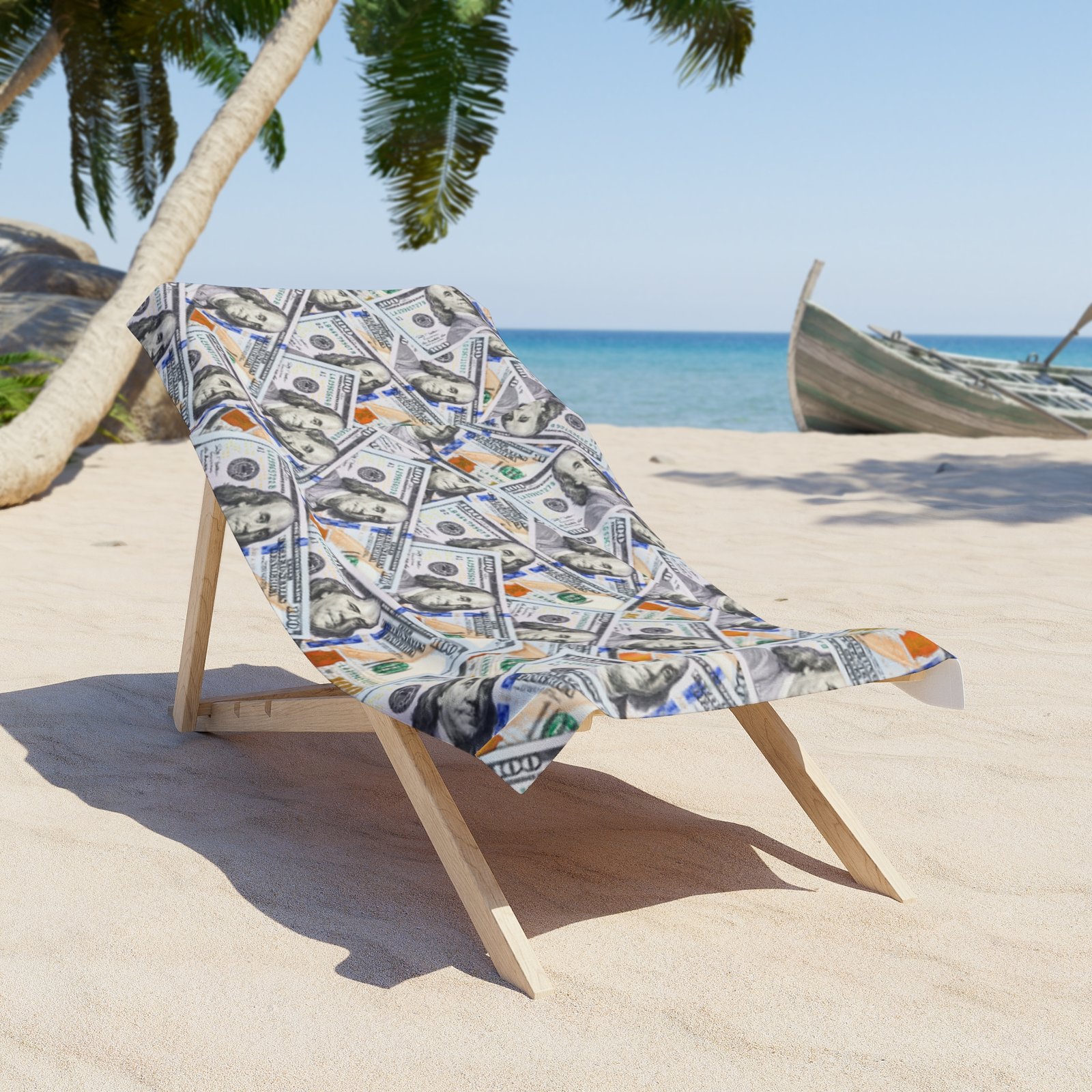 Wrap yourself in luxury with this Money Design Beach Towel featuring a cash dollar print. Perfect for lounging on the beach or by the pool, this towel exudes a trendy and stylish vibe. Ideal for adults looking to make a statement while soaking up the sun. Great for holidays, vacations, and beach outings.
