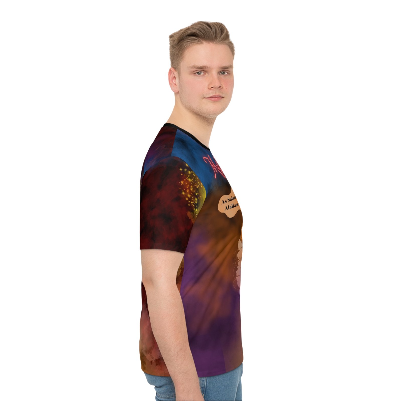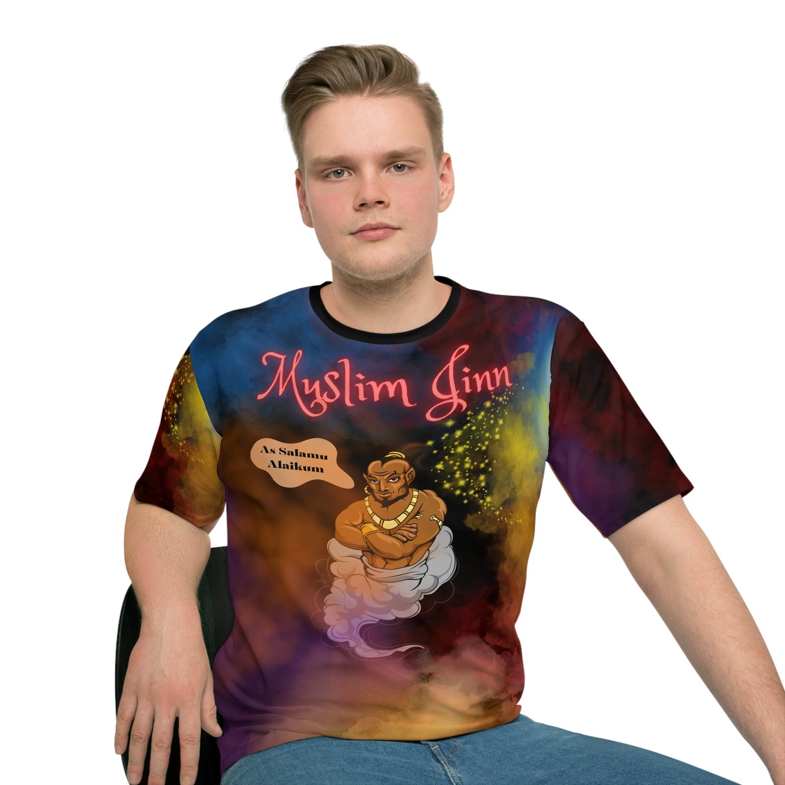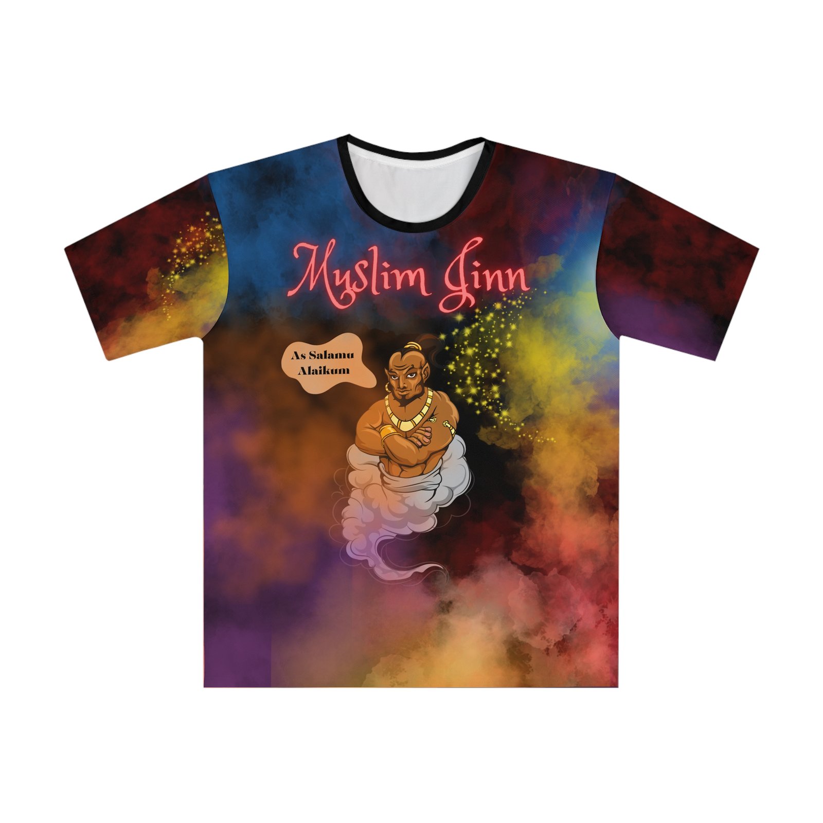 A welcome upgrade to any wardrobe and online store, Muslim Jinn unisex loose t-shirts brings the right attitude to any occasion. With a 100% polyester fabric that is supremely soft, each shirt comes with a loose fit and a classic round collar. With the Muslim Jinn design, it really brings a unique spirituality to life. The Muslim Jinn Loose T-shirt (AOP) | Muslim T-Shirt | Eid Gift for Muslims | Muslim Athletic Wear | Islamic Clothes | Tops & Tees T-shirts .: Material: 100% polyester .: Medium fabric (5.6 oz/yd² (190 g/m²)) .: Seam thread color automatically matched to design (black or white) .: Extra large sizes available .: Loose fit