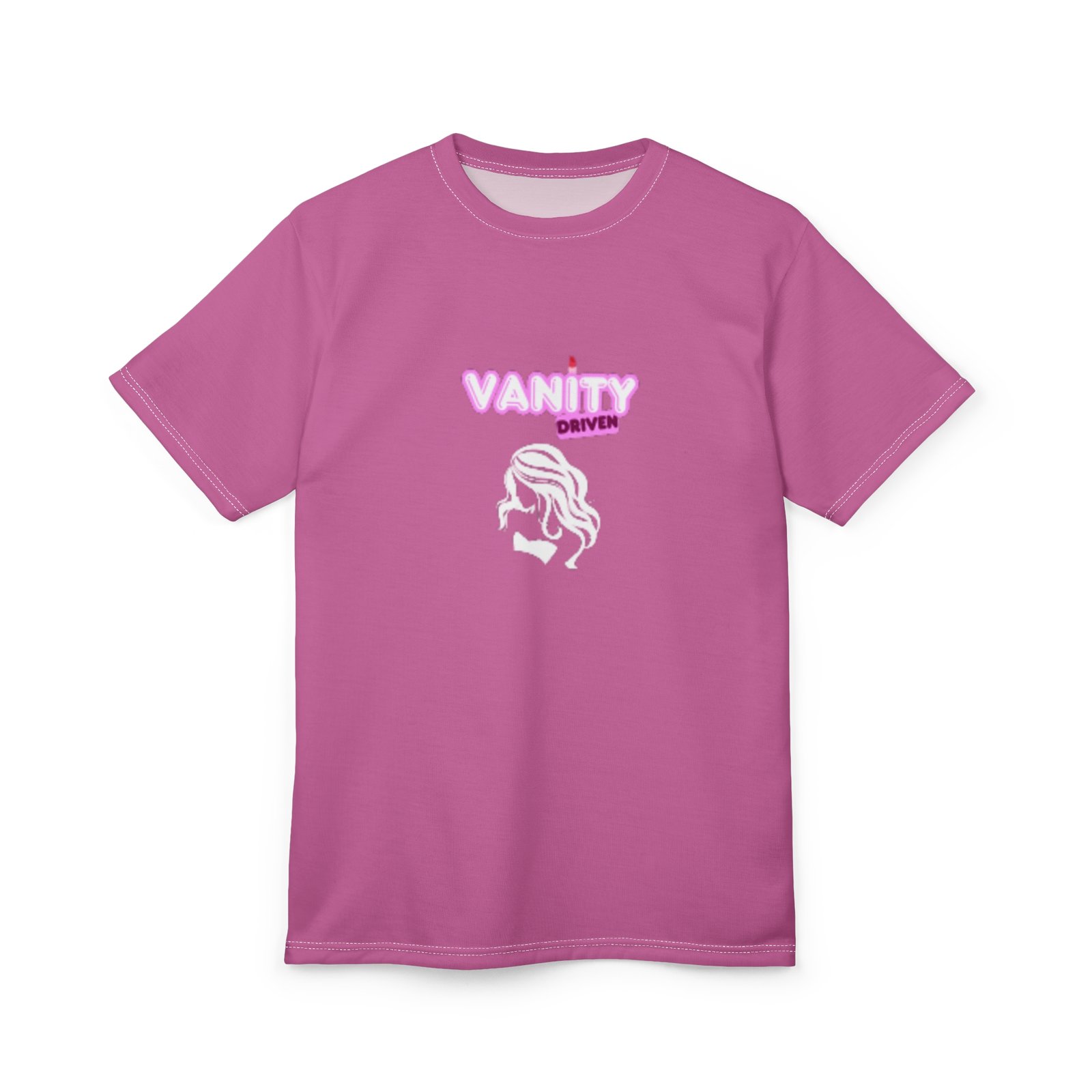 Vanity Driven Women Sexy T-Shirt, Trendy Pink Fashion Tee, Fun Graphic Shirt, Gift for Her, Summer Casual Wear. This trendy pink fashion tee is perfect for the fashion-conscious woman looking for a fun graphic shirt to wear during the summer. It makes a great gift for her and is ideal for casual wear. Product features – 100% Polyester fabric for durability and quick drying – Side seams for structural support – Ribbed knit collar for elasticity – Shoulder tape for stability – Regular fit and tagless design – Suitable for women looking for trendy fashion tees for casual sexy wear or as a gift for special occasions Care instructions – Do not dryclean – Do not iron – Tumble dry: low heat – Do not bleach – Machine wash: cold (max 30C or 90F), gentle cycle