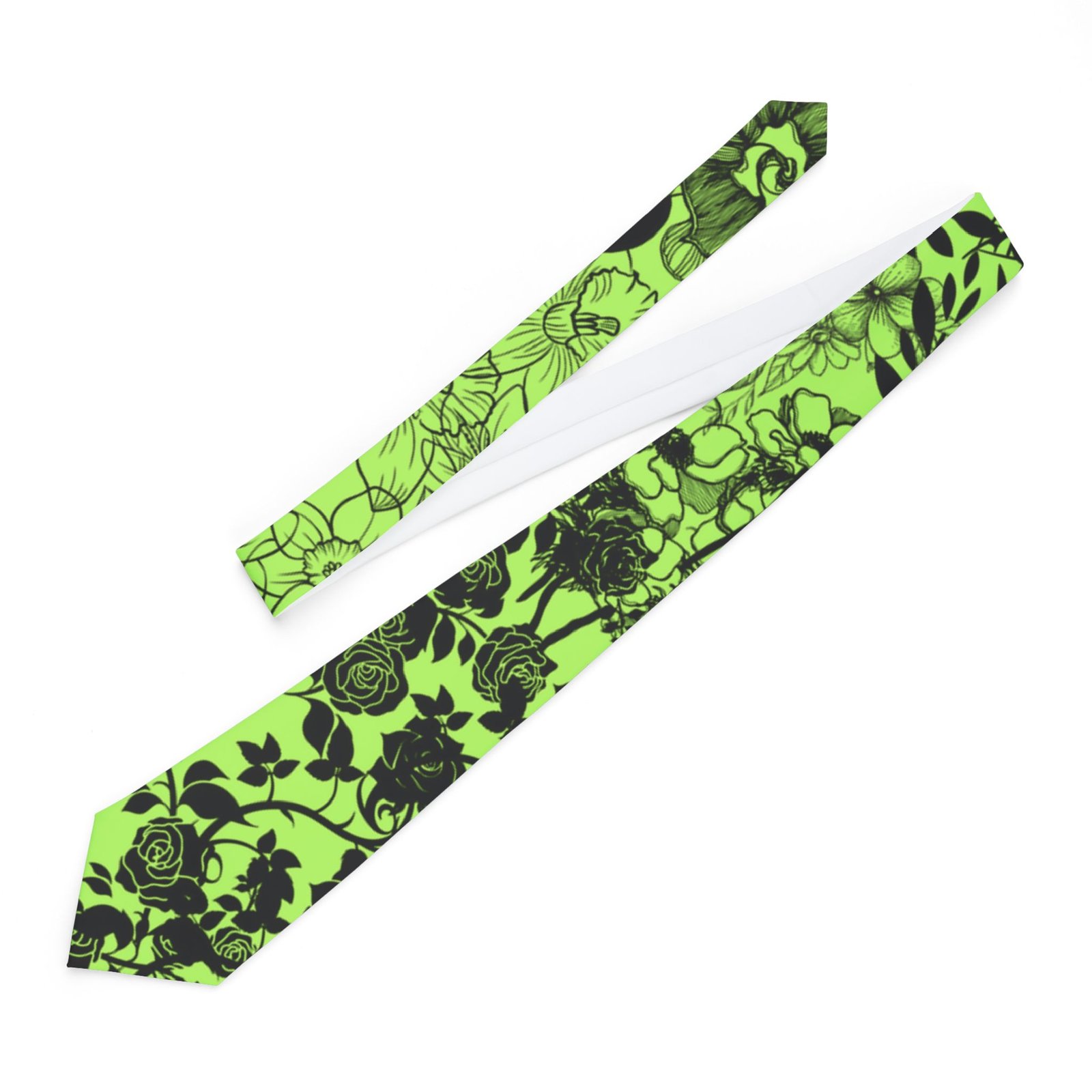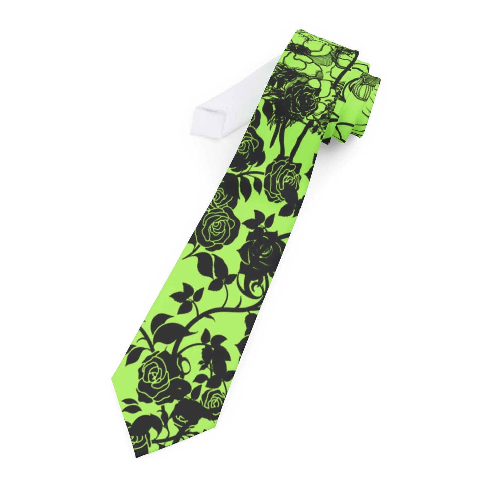 This vibrant neon green and black flowery necktie exudes a bold and stylish vibe, perfect for those looking to make a statement at formal events or special occasions. It’s a great addition to any gentleman’s wardrobe and can be worn during weddings, parties, or even business meetings.