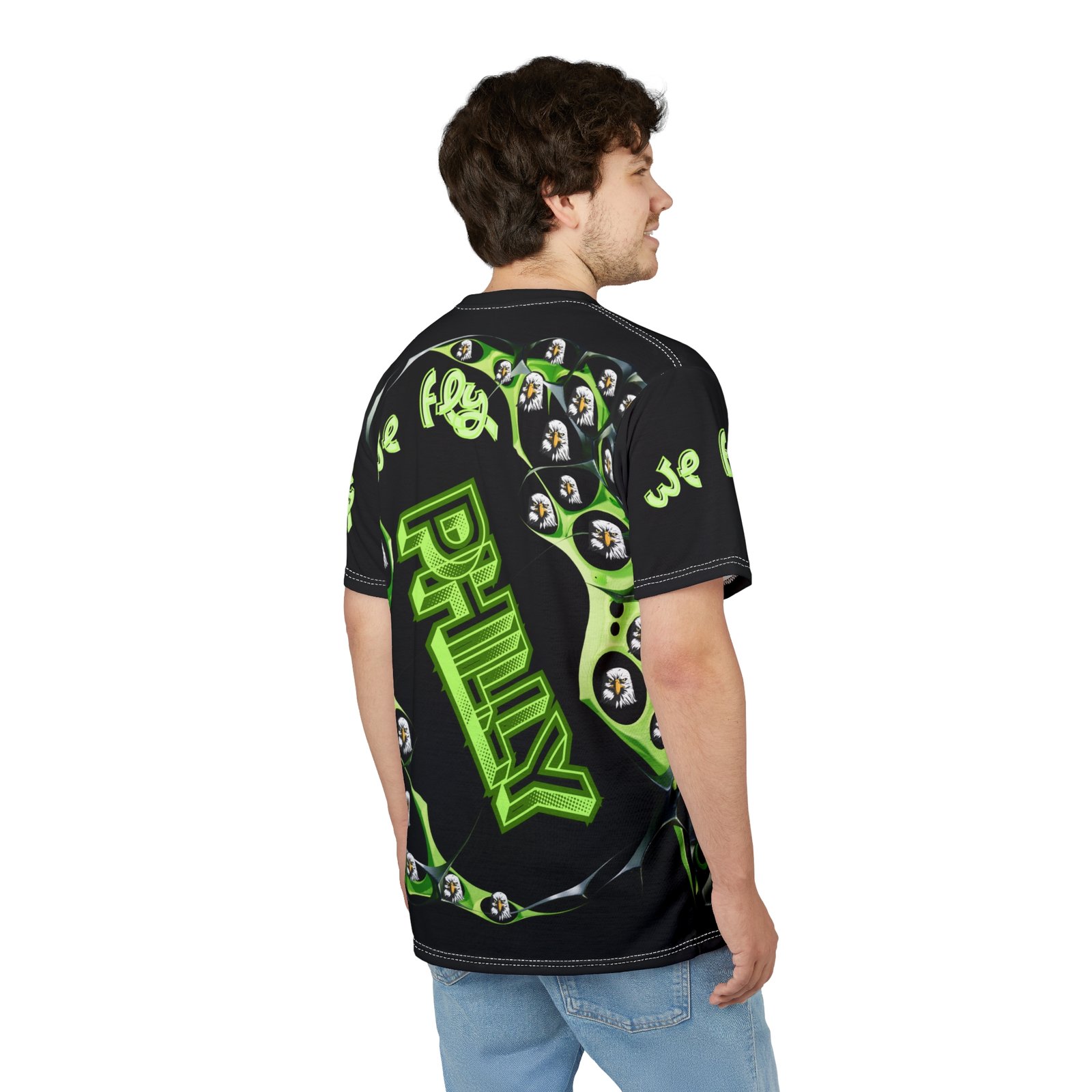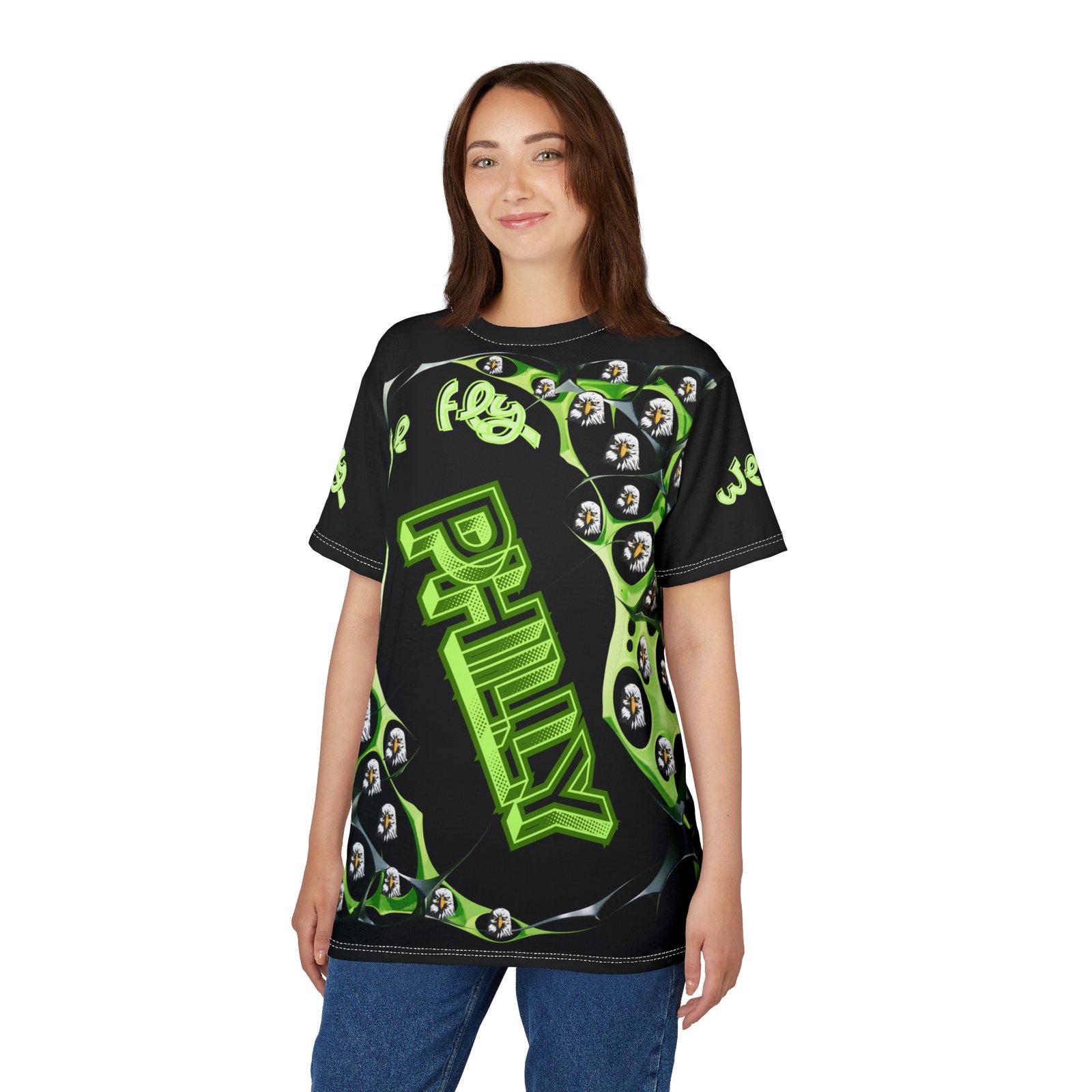 Introducing this vibrant We Fly Philly Graphic T-Shirt Unisex Tee that captures the essence of casual style of Philadelphia. With its bold graphics and lively colors, this Vibrant Unisex Philly T-Shirt is perfect for expressing your individuality and reprenting Philly culture. The lightweight polyester fabric ensures that you stay cool and dry, making it ideal for a day out or a relaxed evening. This We Fly Philly Jersey tee is designed for everyone who loves to stand out in a crowd. Whether you’re going to a sports event, hanging out with friends, or just lounging at home, it effortlessly fits into your lifestyle. Great for birthdays, casual celebrations, or just because—it’s a versatile addition to any wardrobe. This We Fly In Philadelphia Shirt is particularly relevant for people who love Philly, allowing you to show your pride in a stylish way. Product features – 100% Polyester for durability and quick drying – Side seams for enhanced shape retention – Ribbed knit collar for added comfort – Shoulder tape to prevent stretching – Two fabric weight options for personalized comfort Care instructions – Do not dryclean – Do not iron – Tumble dry: low heat – Do not bleach – Machine wash: cold (max 30C or 90F), ge